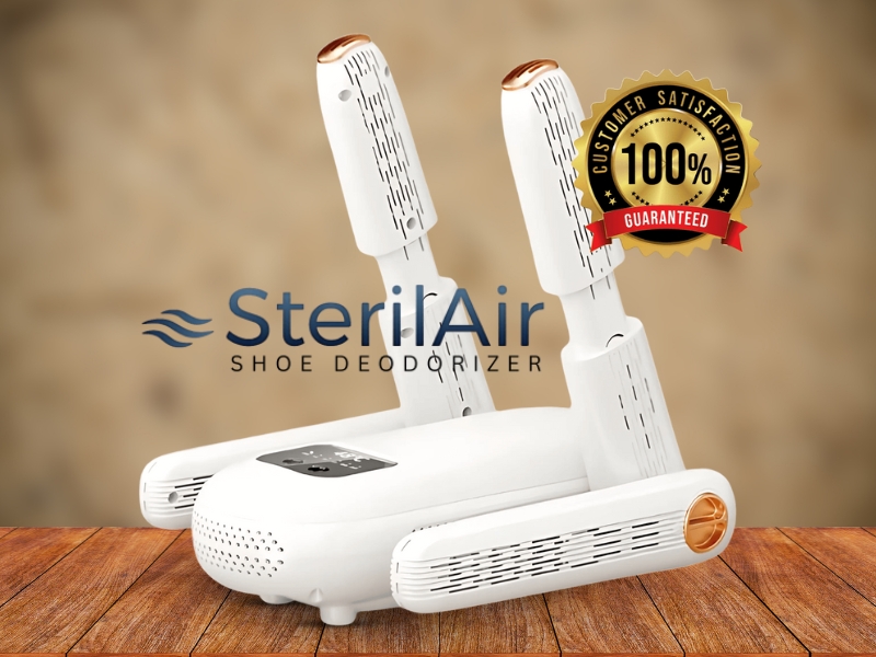 The Steril Air Shoe Deodorizer is a high-tech, portable device that uses current sterilization technology to get rid of shoe odor, bacteria, and moisture.UV-C light and ozone purification have both been shown to kill up to 99.9% of germs that cause bad smells, athlete's foot, and fungal diseases.Sprays and powders only cover up the smell for a short time, but this device gets rid of the source of the smell: microbes that have built up inside the shoe fabric.The Steril Air Deodorizer is small and easy to use. It works with all kinds of shoes, from casual sneakers and boots to dressy leather shoes. It's great for sports, gym-goers, and anyone else who wants to keep their feet clean and their shoes smelling fresh for a long time.The device also dries sweat quickly, which keeps skin from getting irritated or infected from wetness. It's a smart, eco-friendly, and reusable way to take care of your shoes every day.